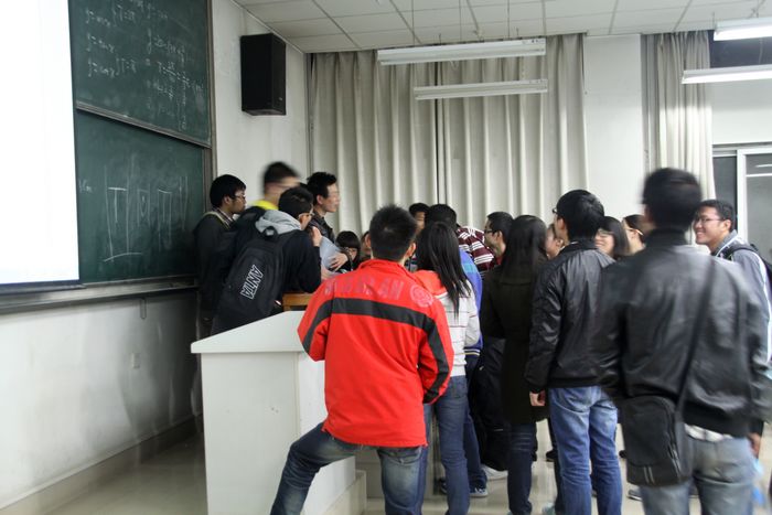 最后,王老师给大家解答疑问时间,很多对自己课程和学分都不明白的同学纷纷上讲台和老师面对面的交流,老师认真耐心的解答同学们的疑问,给同学们选课提出了参考意见。