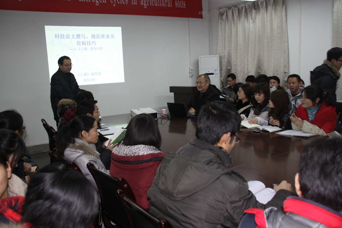 2012年2月24日上午,在yl7703永利第一会议室,《土壤》杂志编辑部主任周德智研究员做了题为《科技论文撰写、规范要求及投稿技巧 》的学术报告,公司师生60多人参加了报告会,高亚军副经理主持会议。 在报告会上,周德智研究员详细地讲述了科技论文特征及分类、科技论文写作步骤、科技论文格式要求、科技论文写作和投稿应该注意的几个问题、投稿技巧等问题。周德智研究员渊博的知识和精彩的报告赢得了广大师生热烈的掌声和一致好评。 会后,公司部分师生与周德智研究员就如何投稿等相关问题进行了进一步探讨和交流。