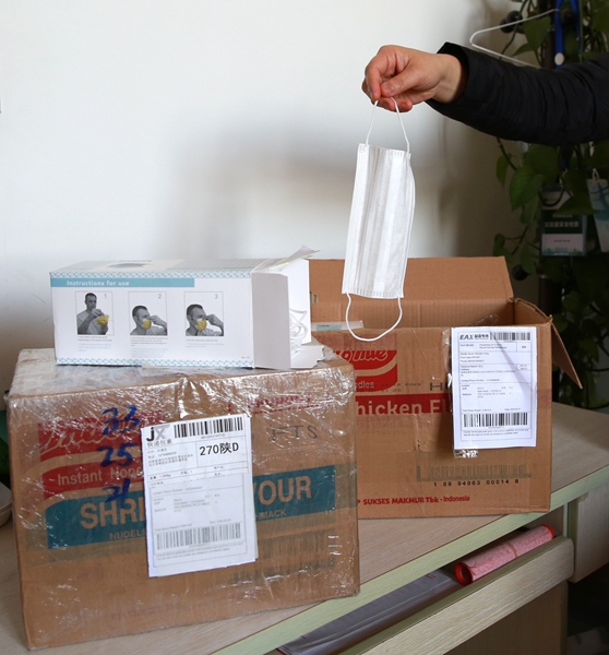 据了解,P2型医用口罩是欧盟标准的,与美国标准的N95以及国标KN95防护效果相同。“这些口罩产自法国,都是网上订的。”杨晓梅说,为了防雨她用保鲜膜将包装箱缠裹了三层,她还订购了10把红外体温测量枪,“很可惜不能邮寄只好退货”。