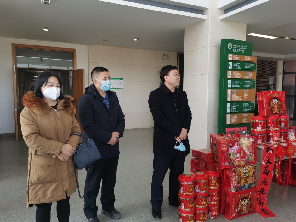 随后学院领导为员工发放慰问品,表达新春问候和祝福。留校员工对学院给予的关心表示衷心感谢,他们表示将珍惜留校时光,做好自身防护,继续安心学习生活,开开心心过大年。活动结束后,学院领导老师同全体留校过年员工在学院楼前合影留念。