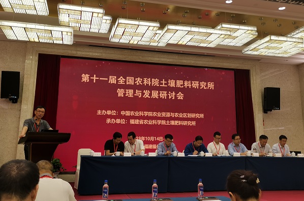 10月14-17日,2019年第十一届全国农科院土壤肥料研究所管理与发展研讨会在福建福州市召开。会议由中国农科院农业资源与农业区划研究所主办,福建省农科院土壤肥料研究所承办,福建省农科院翁启勇经理、中国农业科学院农业资源与农业区划研究所周清波所长、农业农村部种植业司陈明全处长出席会议并讲话。全国从事土壤肥料研究工作的36个相关研究所管理人员共计150余人参加会议。公司党委书记闫德忠、土肥所所长耿增超教授、富平现代农业综合试验示范站首席专家田霄鸿教授参加了会议。