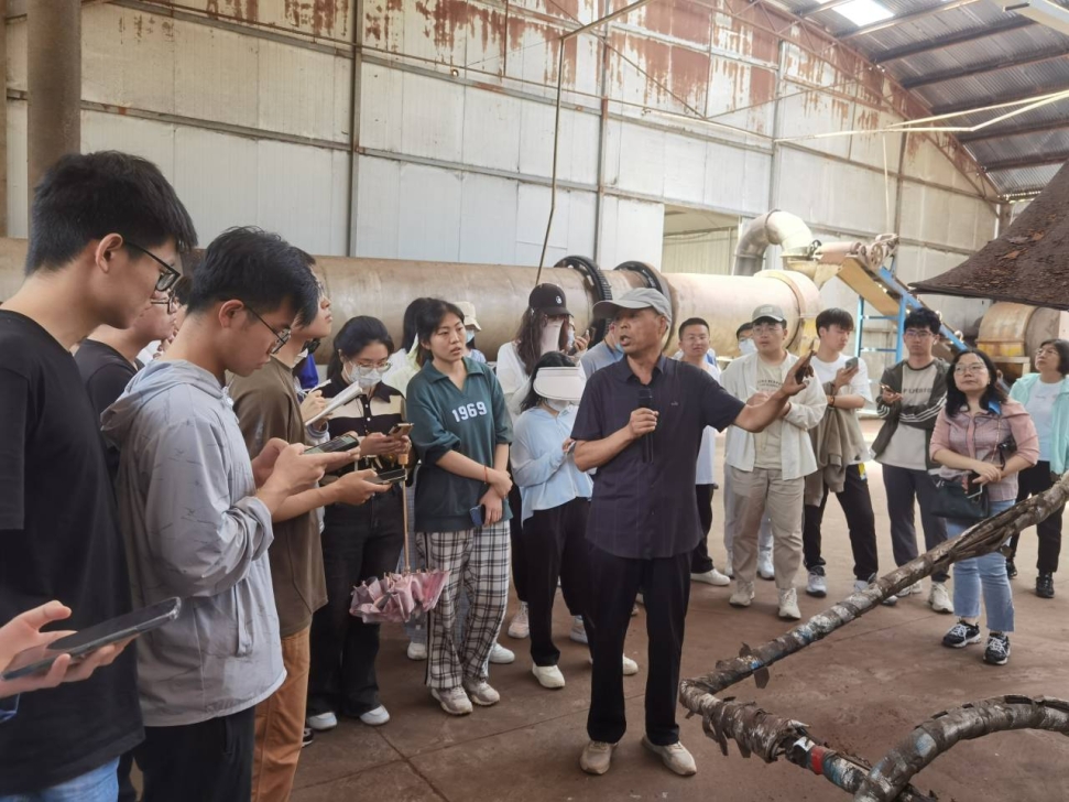上午在益果肥业工厂,技术人员带领同学们在新旧有机肥生产工厂逐个参观发酵、制肥和配料车间,向同学们讲解堆肥和制肥的工艺设备及基本原理。根据技术人员的现场介绍和课堂所学理论知识,同学们对堆肥与制肥的工艺流程有了清晰地认识,明白肥料的制备需经过好氧堆肥的高温阶段、腐熟阶段、机械提升、破碎筛分、加水造粒、烘干、冷却及包膜等步骤,也学到了许多工艺细节,例如包膜工艺前必须先进行冷却,否则从烘干机出来的肥料所携带的高温会将生物膜的菌株杀死。参观结束之时,黄老师向同学们强调堆肥厂的环保意义,表示该厂更新后的新厂房全生产系统全密闭、自动化程度提升且各级设备均设有除尘器包括旋风、袋式和电除尘器,做到粉尘循环利用和零排放,尾气也进行了净化处理,是现代有机肥企业的环保典范。