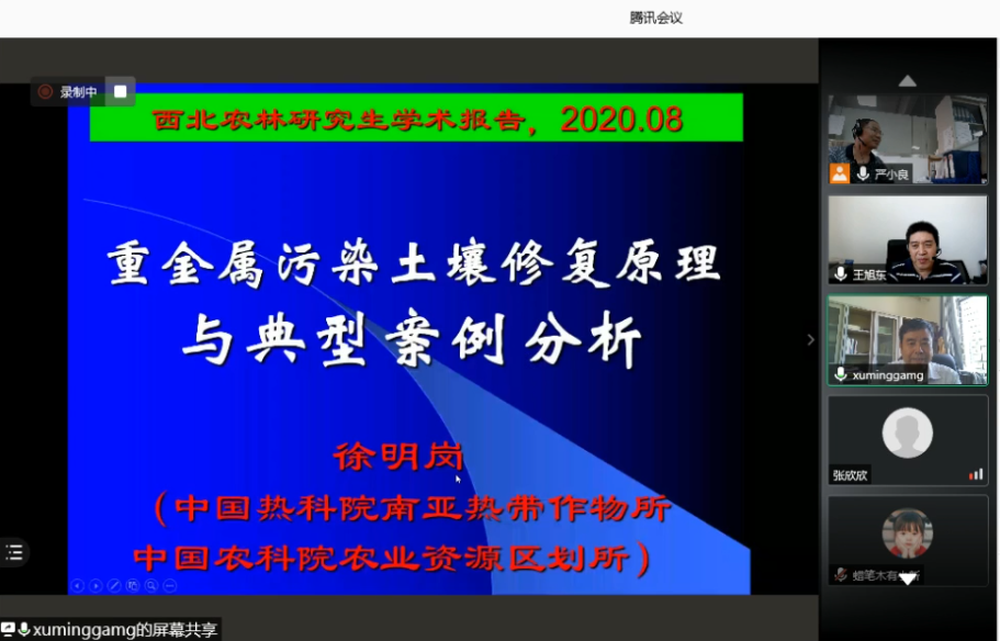 8月27日下午,学院特邀请学校杰出员工,中国热科院南亚热带作物所所长徐明岗研究员做了题为“重金属污染土壤修复原理与案例分析”的学术报告会。报告会通过腾讯会议线上举行,由副经理王旭东教授主持,284名师生在线聆听了报告。