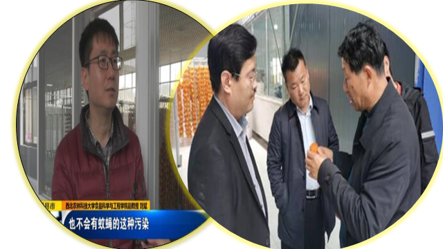 首先,攻克了柿饼干燥、起霜、保存方面的技术难题。都知道柿饼好吃,但传统柿饼加工难度大,依靠自然风干,干燥脱涩过程耗时长(约需50-60天),易发生霉变,干燥后起霜慢。食品科学与工程学院段旭昌副教授与刘斌副教授研制出的人工控制干燥-快速起霜-臭氧杀菌-无菌包装的柿饼工艺,解决了柿饼工业化加工难题,使柿饼生产周期由原来的80-90天缩短至30天左右,柿饼上市时间提前30天以上,柿饼质量卫生安全,保持了传统软香甜软糯的特色。该工艺在富平县2个柿饼加工企业进行试验示范,得到企业领导与富平县领导的高度肯定。