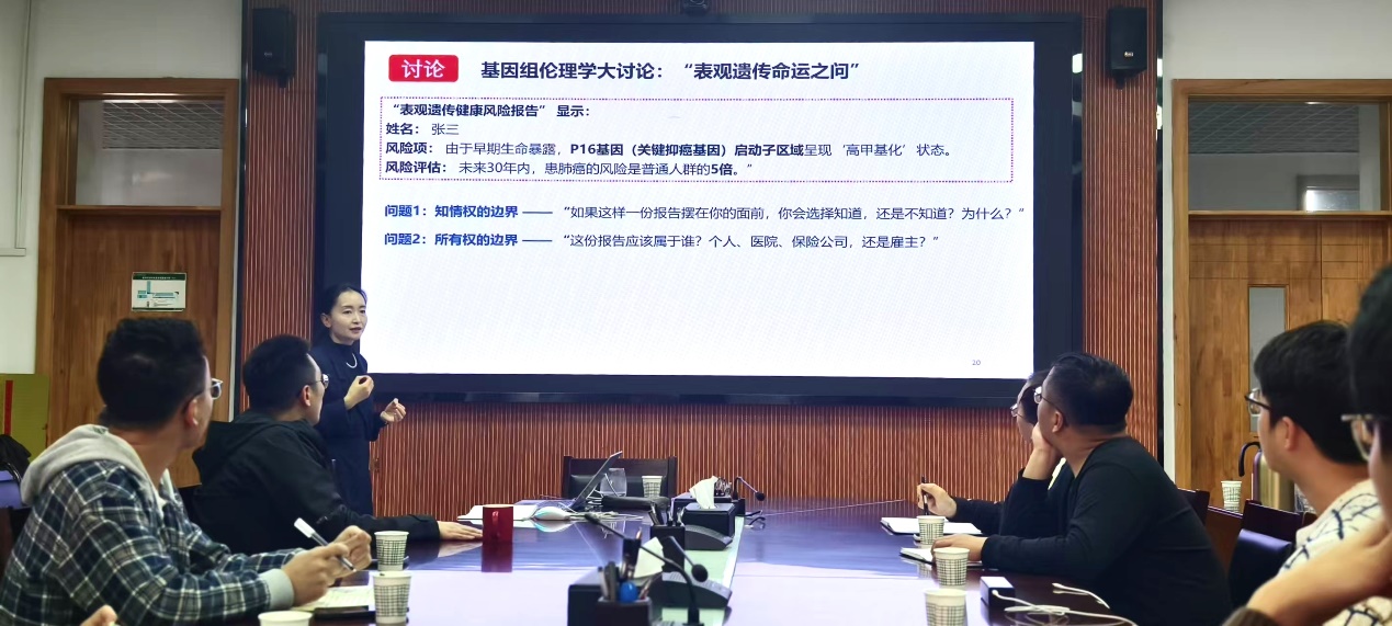 在思政育人环节,课程紧扣“敬畏自然与责任担当”核心,引导员工思考科技伦理边界——围绕“表观遗传健康风险报告的知情权与所有权”展开讨论,强化“科技向善”的价值导向;结合“健康中国”生态理念,强调环境防护对表观遗传健康的重要意义,激发员工科技报国的使命感。