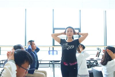 为深入贯彻落实《全民健身条例》,倡导“快乐工作、健康生活”的理念,增强公司教职工的身体素质,缓解工作疲劳,5月18日下午,学院邀请体育部孟月婷教授、高颖晖副教授走进学院为教职工开展工间操培训活动。